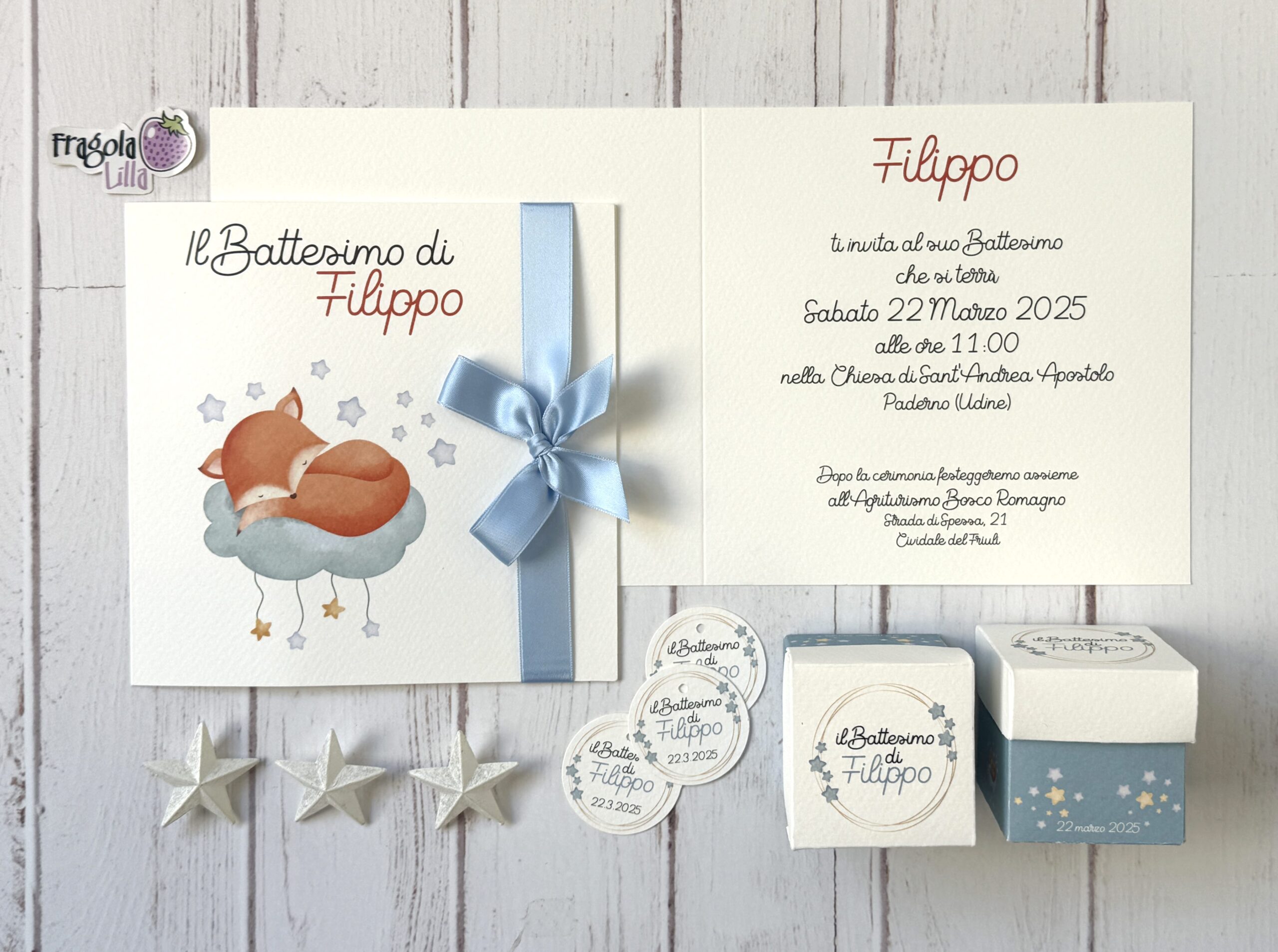 Formato 16x16cm, con busta coordinata compresa. Nastro rosa, azzurro o altri colori. Quando avremo ricevuto l’ordine, ti contatteremo via mail per definire il testo e realizzare la bozza personalizzata.