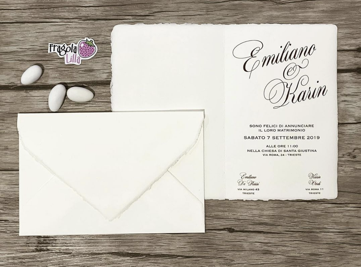 Il prezzo comprende partecipazione, busta bianca Amalfi coordinata, biglietto bomboniera in cartoncino ruvido non Amalfi (formato classico rettangolare piegato a metà), iva, stampa e personalizzazione base (font, testo, colore).